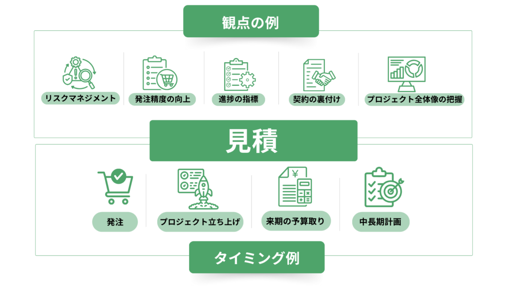 | 詳細 | ・プロジェクトの一貫した見積もりを 「企画後・要件定義後・基本設定後」に実施 ・見積もりをより精緻なものにする ・次プロセスへのアプローチを容易にする | ・機能要件、非機能要件に関連する見積もり ・クライアント特有の見積もりに関して、 事前の情報提供が必要な場合があります |